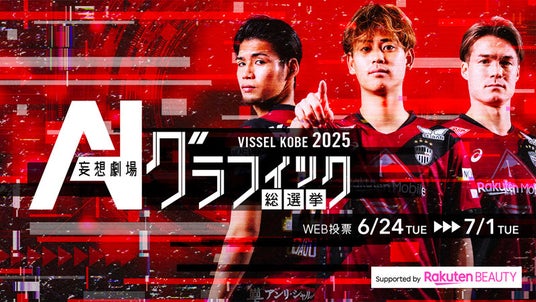 このたび、楽天ヴィッセル神戸株式会社(本社:兵庫県神戸市中央区、代表取締役社長:千布 勇気、以下「ヴィッセル神戸」)は、AI技術を活用し、ヴィッセル神戸の選手たちがこれまでにない姿に変身する企画「AI妄想劇場!ヴィッセル神戸グラフィック総選挙 Supported by 楽天ビューティ」