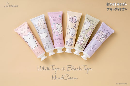 世代を超えて愛される人気キャラクターとコラボレーションした大人かわいいコスメを展開するギフトコスメブランド「Lovisia(ラヴィジア)コスメシリーズ」は、ゆるシュールな魅力でSNSで注目を集める「ホワイトタイガーとブラックタイガー」と初のコラボレーションとなる『Lovisia ホワイトタイガーとブラックタイガー ハンドクリーム』(全6種)を発売いたします。