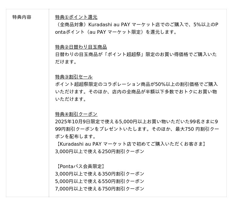 2.Kuradashi au PAY マーケット店の特典