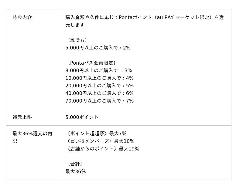 1. コジマ au PAY マーケット店の特典