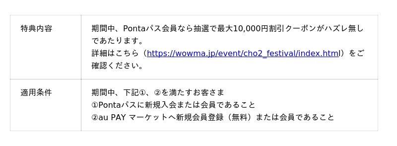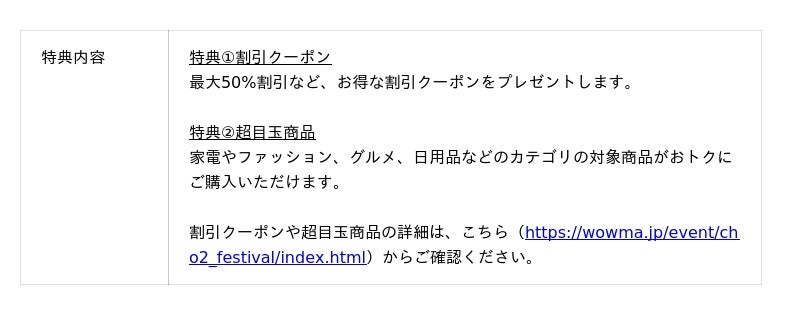 3.ポイント超超祭の特典(https://wowma.jp/event/cho2_festival/index.html