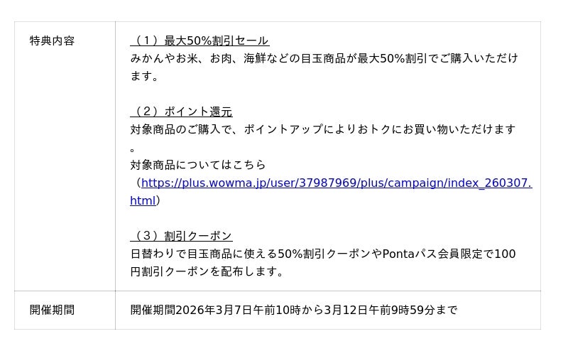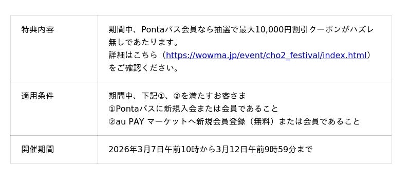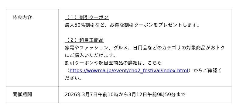 ■ポイント超超祭の特典(https://wowma.jp/event/cho2_festival/index.html