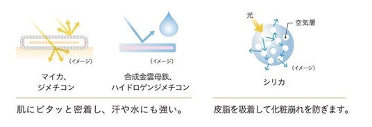 水や汗・皮脂による化粧崩れがしにくく、つけたての仕上がりが持続します。