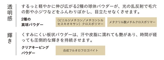 微粒子のパウダーがふわっと肌にとけこみ、