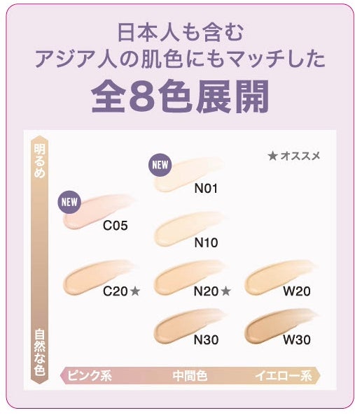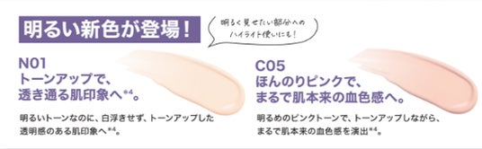 「さらに明るい色が欲しい」、「血色感のある色が欲しい」というお客様のお声から、理想の肌印象を叶えるべく、”ハイトーンでありながら肌になじむN01”と、”肌本来の血色感を演出*⁴するほんのりピンクのC05”の2色を開発いたしました。
