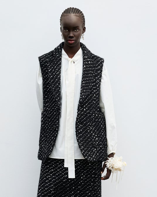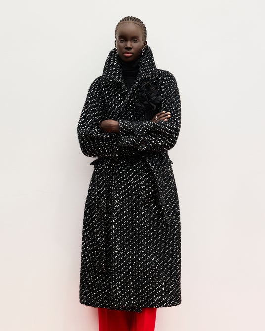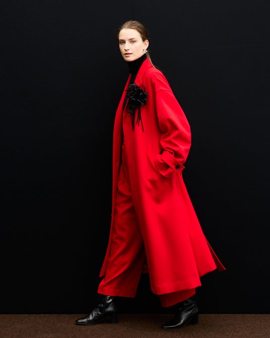 大胆な真紅のウールをミニマルなシルエットで引き立てたセットアップ、ざっくりと粗い立体感のある織り目が存在感を放つツイードコートをはじめ、ジャパンメイドの生地がもつ美しさが際立つアイテムはいずれも、忘れ難いインパクトで大人のスタイルを彩ります。