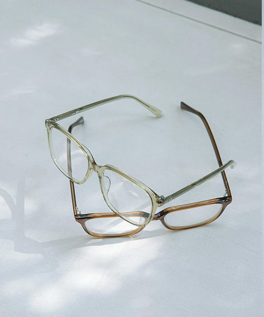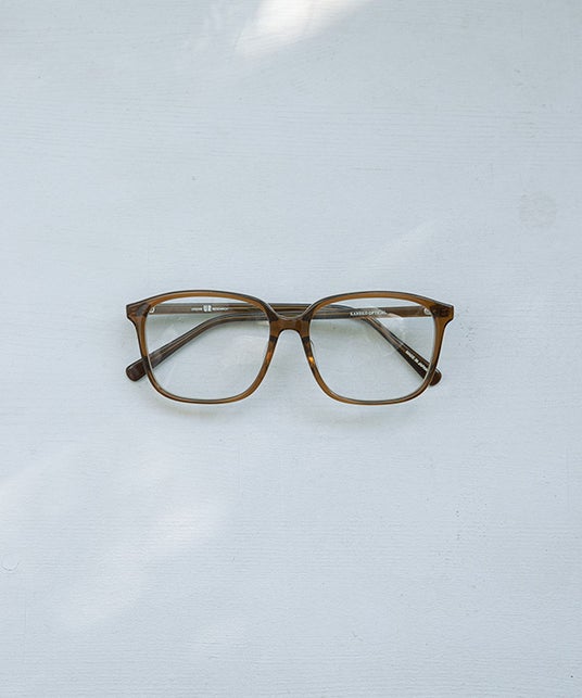 今回の別注では、大きめのフレームを一からデザイン。大きめながらも角を丸く落とすことで、アクセントになりながらもやわらかな印象を与えるシルエットに仕上げています。クリアな質感を活かしたフレームは肌に自然に馴染み、スタイリングに上品な抜け感をプラスします。女性はもちろん男性にもつけていただきたい一品です。