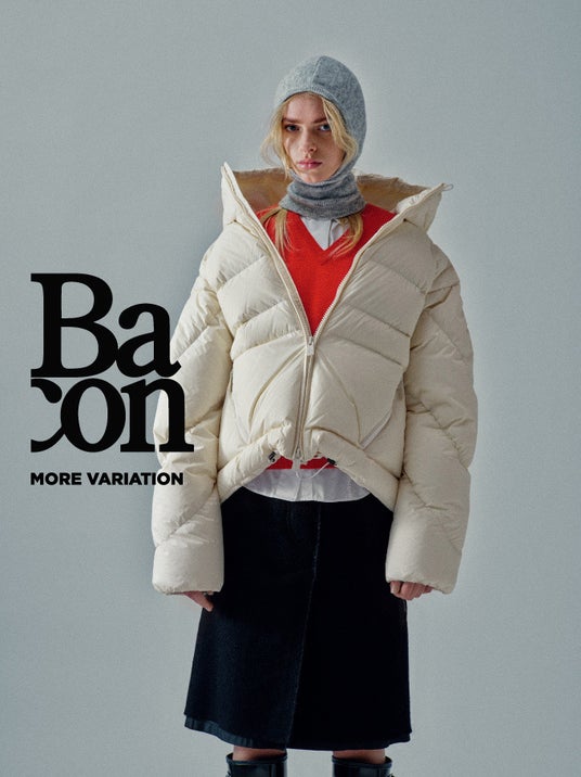 ストリートとアウトドアの間に立つ「BACON」のダウンジャケットは、従来のダウンコートのイメージを刷新する、現代的で自由なエッセンスが魅力。