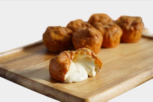 ふんわりもっちりした生地の食感と、はちみつの風味広がる濃厚カスタードクリームを楽しめる、低糖質なのに満足できる自慢のシュークリームです。