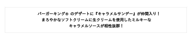 暑い夏にちょっと涼みたい時や、お好みのバーガーセットのデザートに『キャラメルサンデー』をぜひお楽しみください。