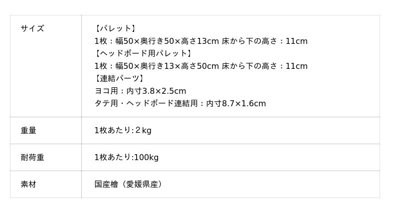 また、連結部分はネジやボルトを使わず、専用の金具を差し込むだけで固定できる簡単設計です。そのため、寝返りを打ってもパレットがずれにくく、安心して快適にお使いいただけます。