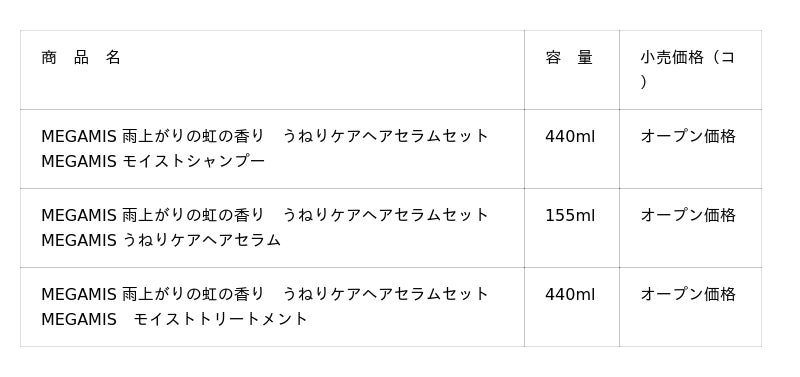 女神級にまとまるツヤ髪へ導く『MEGAMIS』から『雨上がりの虹の香り うねりケアヘアセラムセット』を数量限定で新発売