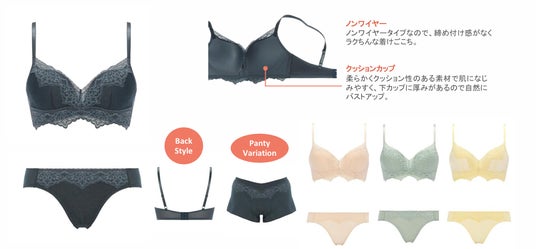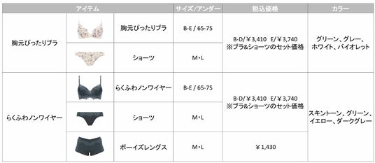 「Daily Plus」は、プチプライスラインにワンランク上の機能やデザインをプラスしたブラ&ショーツセットのシリーズです。新たに、胸元の隙間を軽減してぴったりフィットする「胸元ぴったりブラ」と、ノンワイヤーでふんわり軽い着けごこちの「らくふわノンワイヤー」の2タイプが登場します。淡く優しい花柄や、華やかなレースをあしらったデザインで、毎日にさりげない特別感を添えるデザインも魅力。機能性と気分を高めるデザイン性を兼ね備えたセットアップを、お手頃価格で展開します。