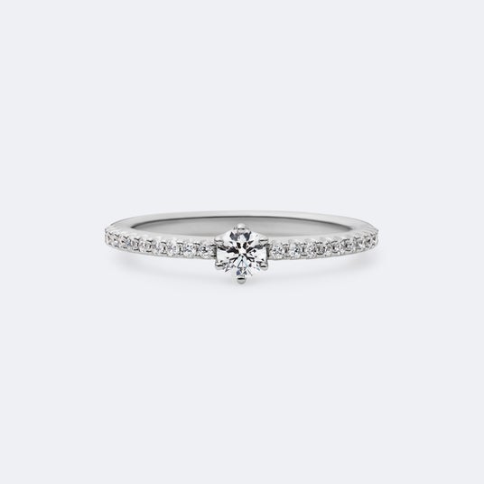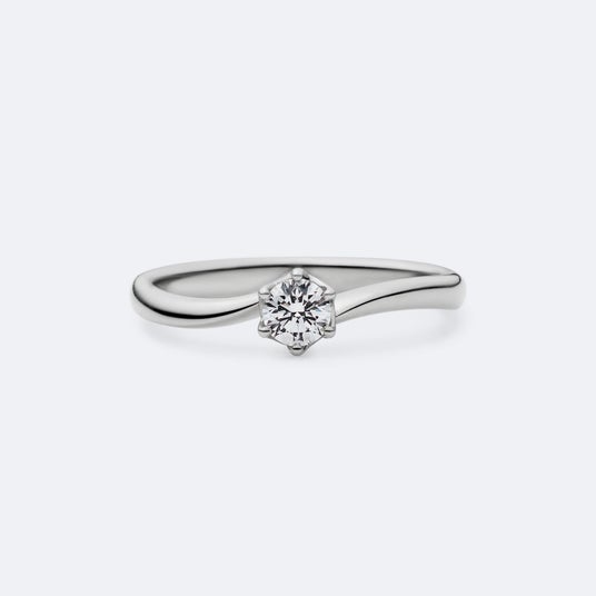 「永遠」を意味するエタニティリングに、正当感のある6本爪の石座を配した気品あふれるエンゲージメントリング。