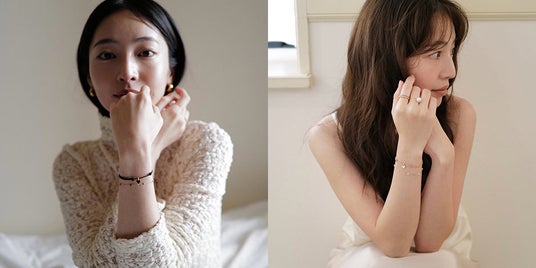 PLUSV_× YUKI collaboration ハートブレスレット¥35,200-(税込)/ PLUSV_× YUKI collaboration パールブレスレット¥38,500-(税込)