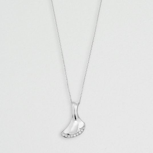 銀の清らかな光にキュービックジルコニアの繊細な煌めきが重なり、モチーフの多面的な魅力を静かに際立たせます。