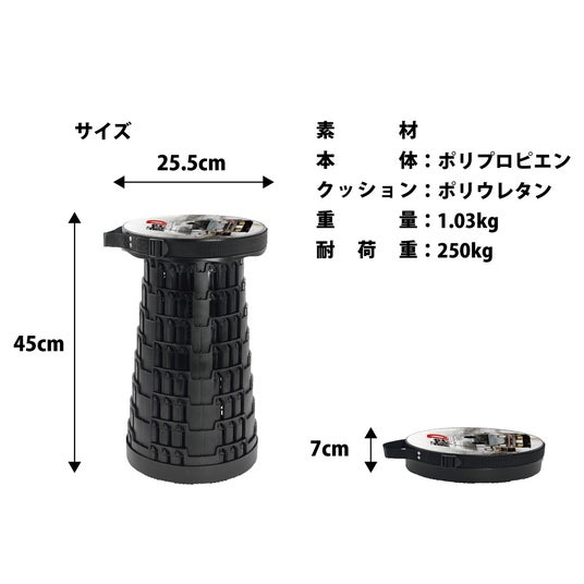 コンパクトに収納できる設計ながら、広げればしっかりと安定感のある座り心地を提供し、耐久性のあるしっかりとした作りで、体格を問わず安心してご使用いただけます。