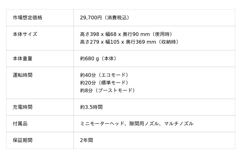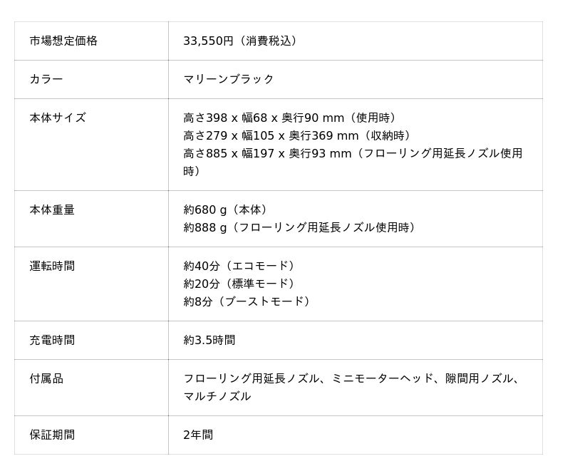機動力や用途の幅広さを活かし、気になったゴミをこまめに掃除したい方、2台目の掃除機として使いたい方、ちょっとした床掃除も1台で済ませたい方など、様々な方の掃除習慣を快適にサポートします。