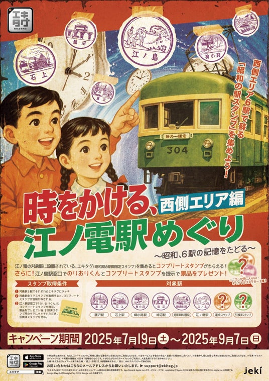 ◎ 2025年7月19日(土)より、江ノ島電鉄とエキタグがお届けするのは、”ノスタルジーの旅”―。昭和期に実際に使用されていた駅スタンプをエキタグで完全復刻した、「時をかける、江ノ電駅めぐり 西側エリア編 ~昭和、6駅の記憶をたどる~」を開催いたします。