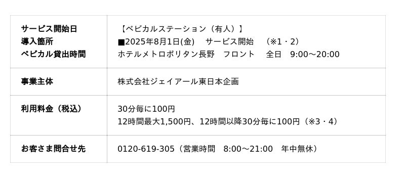 ○この度、株式会社ホテルメトロポリタン長野と連携し、長野駅直結のホテルメトロポリタン長野で8月1日よりサービスを開始いたします。ベビーカーは、お子さまに人気の新幹線923形ドクターイエローベビーカーを貸出いたします。
