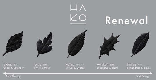 株式会社 薫寿堂は、日本で唯一の和紙で出来た葉っぱをモチーフとしたお香「HA KO」のブラックラインを本日9月18日にリニューアルし、よりお楽しみいただけるよう、「Awaken(ヒイラギ)」「Dive(ムクゲ)」といった葉っぱのデザインと、香りを拡充したことをお知らせいたします。ブラックラインは、「睡眠」「瞑想」「リラックス」「覚醒」「集中」という目的に合わせた天然アロマを贅沢に使用し、「HA KO」と比べ機能的かつラグジュアリーでモダンなラインになっています。秋の夜長の深まる静けさに寄り添う香りを、ぜひお楽しみください。