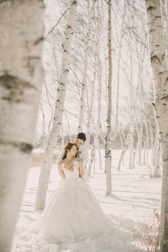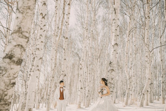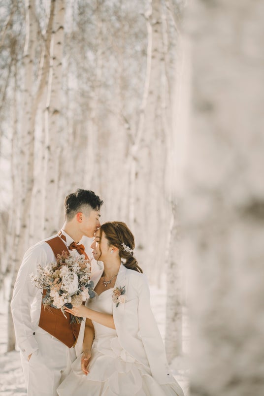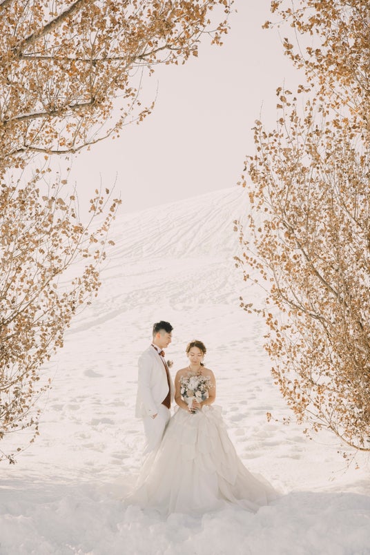 雪景色を背景にしたドラマチックなウェディングフォトは、新郎新婦にとって忘れられない一生の思い出となります。