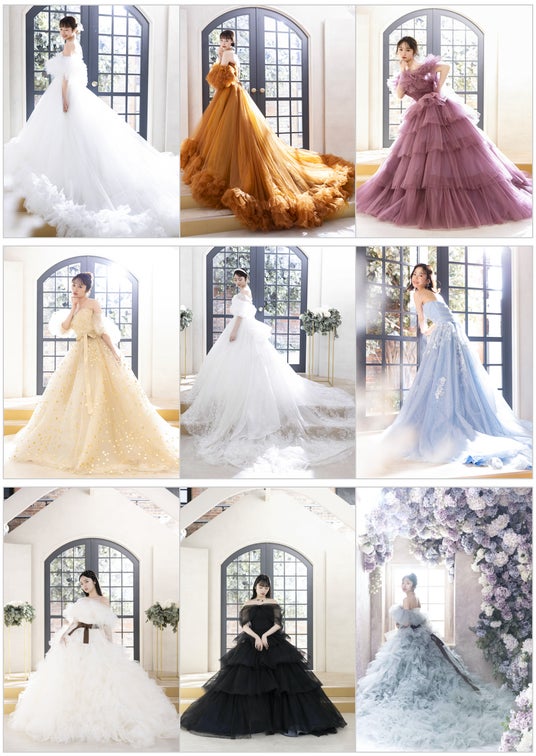 カラーバリエーションも多彩に用意されていて、王道のピュアホワイトやアイボリー、個性を出すならくすみカラーやパステル、華やかなブルーやピンクなどが2025年の流行カラー。