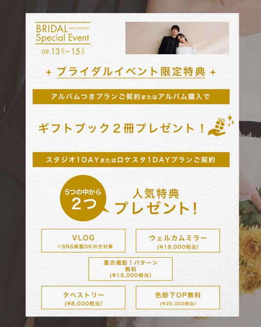 【aim東京原宿店】9/13 ~ 9/15 ブライダルイベント開催決定!