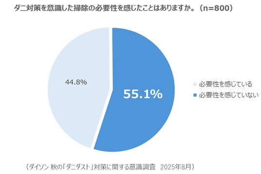 1.全体の半数以上がダニ対策に「必要性を感じていない」ことが明らかに。