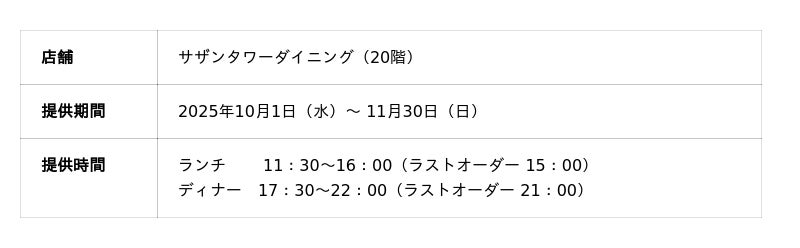 2025年10月1日(水)~ 11月30日(日)までの期間限定