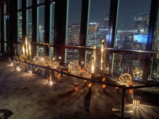 月とうさぎがモチーフの竹あかりでメインデッキ2階のフロア内を装飾し、柔らかな光に包まれる幻想的な空間を演出します。