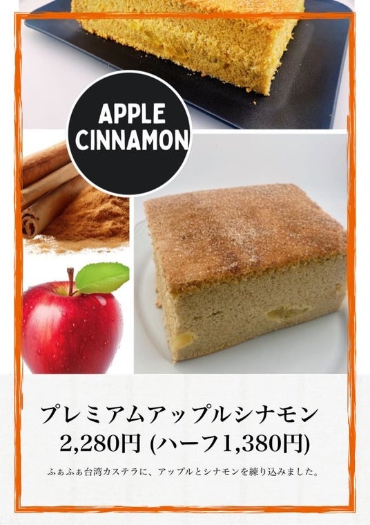 ふわぁしゅぁの台湾カステラに、アップルとシナモンを練りこみました。