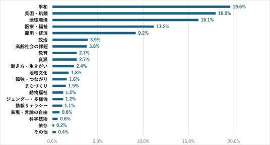 最も重視して設定すべき課題では「平和」が最多で19.6%