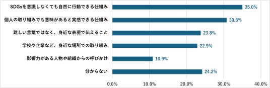 「SDGsを意識しなくても自然に行動できる仕組み」が最多で35.0%