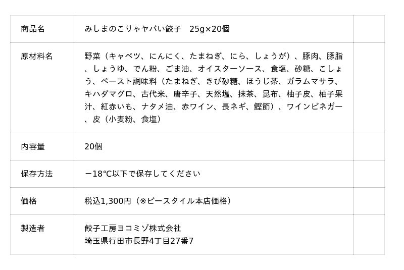 【「みしまのこりゃヤバい餃子」の3つの“ヤバい”特徴”】