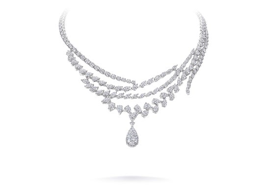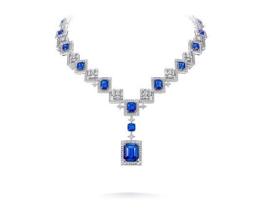 ネックレス [18K ホワイトゴールド、ダイヤモンド、サファイア]