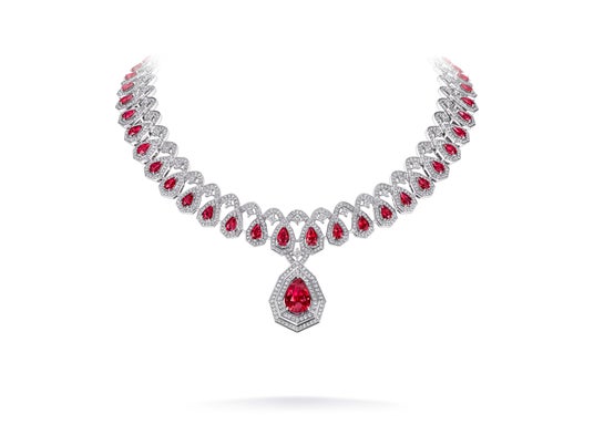 ネックレス [18K ホワイトゴールド、ダイヤモンド、ルビー] ※イヤリングとセット