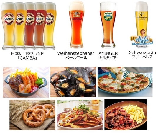 ドイツビールは日本初上陸ブランド「CAMBA(カンバ)」、「Weihenstephaner(ヴァイエンステファン) のペールエール」、「AYINGER(アインガー)のキルタビア」、「Schwarzbrau(シュヴァルツブロイ)のマリーへレス」が楽しめます!