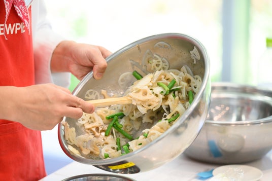 デパ地下のお惣菜やシャレた立ち飲み店に出てきそうなオシャレ感をイメージしつつ、赤提灯の居酒屋でも出せるメニューを目指したという一品です。じゃがいもの代わりにレンコンを使うことで、「食物繊維が摂取できて食感も良い、気の利いたサラダ」に仕上がるとのこと。