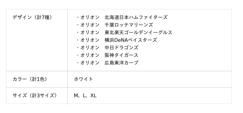 ■オリオン×球団 Tシャツ全7種 各3,850円(税込)