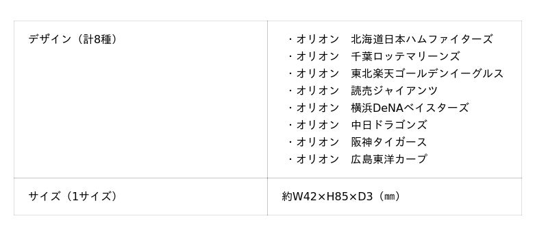 他8球団商品は、オリオンビール株式会社と株式会社フォーカートとのライセンス契約により、製造している商品になります。