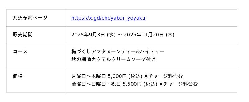 ■期間:2025年9月3日~11月20日100種類以上のドリンクが飲み放題!梅づくしアフタヌーンティーのデザートにも!(予約URL: https://x.gd/choyabar_yoyaku )