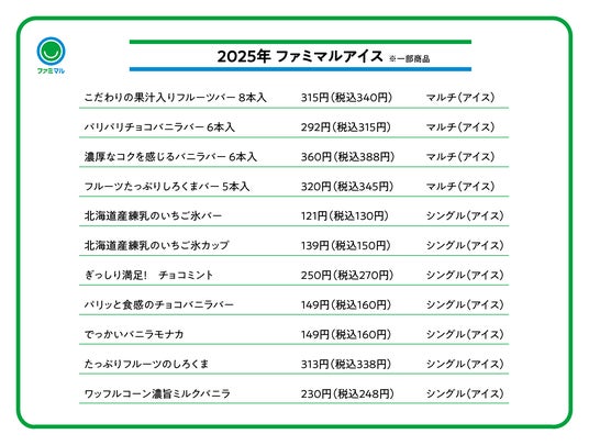 今年2025年夏に販売するファミマルのアイスラインアップの特長をご紹介いたします。