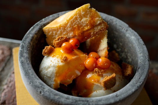 十勝・士幌町「酒井ハスカップ園」の皆さんが丁寧に育て一粒ずつ手摘みで収穫した純国産のサジーで作られたソースは濃厚な北海道産ミルクアイスとチーズケーキによくあいます。