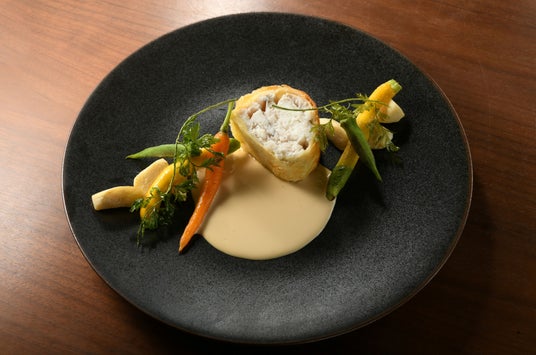 太刀魚のパイ包み マコモ茸とミニ野菜のロティー シャンパンソース