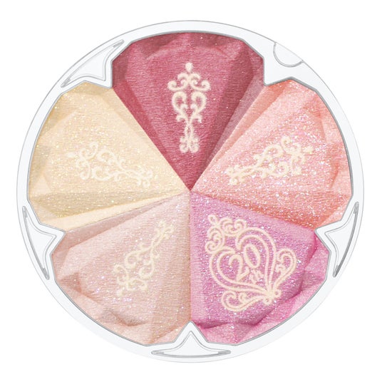 しっかり発色するブライトカラー、肌になじませるニュアンスカラー、光をあたえるハイライトカラーが1つになった5色パレットのチークカラー。感謝の気持ちを込めて、20周年ロゴの特別なステンシルをほどこした、ブーケのような限定カラーです。