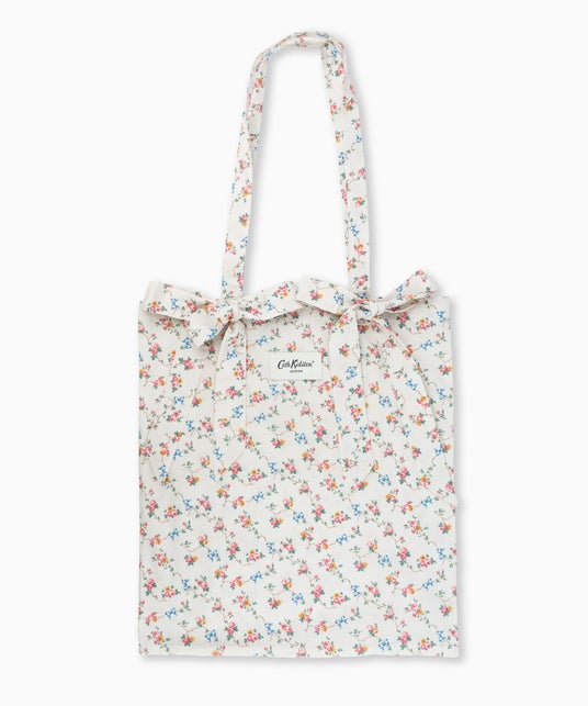 ZOZOTOWN限定のリボントートバッグ Bows & Roseは、薄手のコットン素材なのでとても軽く、A4サイズも余裕でおさまるデイリー使いに最適なサイズです。リボンはご自身で結んでいただくことができる仕様なので、リボンの大きさなどお好みで調整できるのも嬉しいポイント。内側には小物を入れられるポケット付き。裏地のない軽い仕立てになっています。
