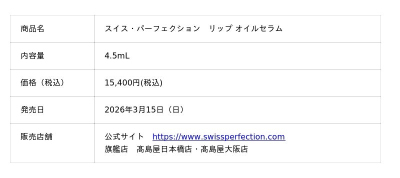スイス・パーフェクション リップ オイルセラム〈唇用美容液〉2026年3月15日(日)発売