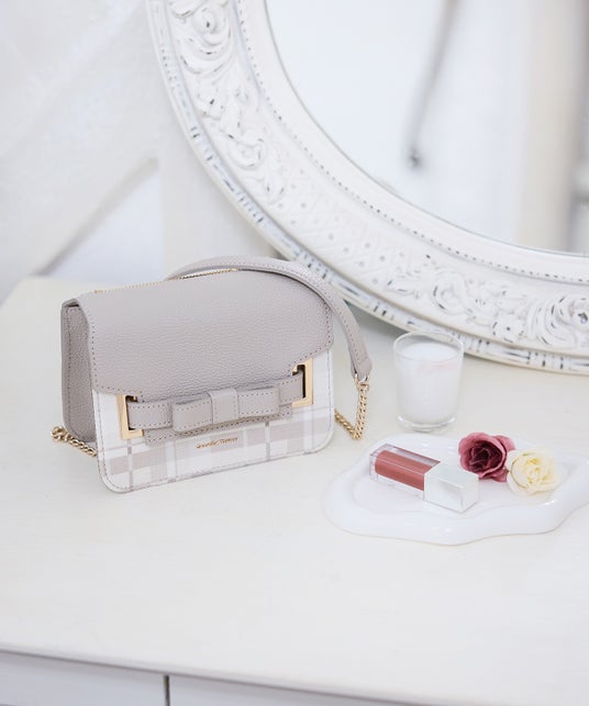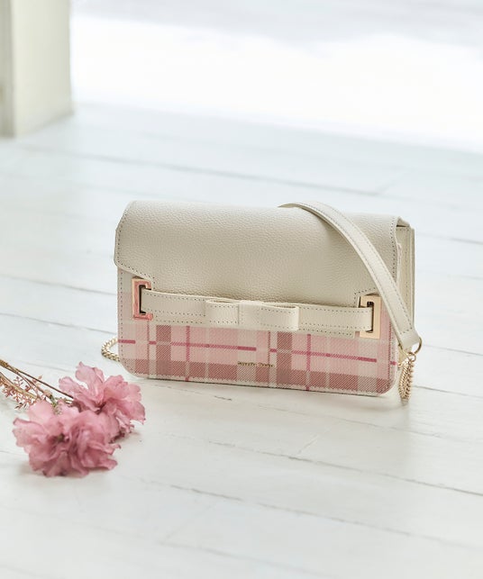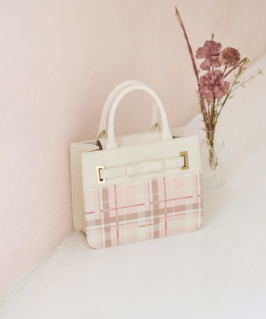 新たにチェック柄バージョンが登場。オリジナルのチェック柄は、ラメ糸を織り込んだ仕様で、角度によってキラキラと輝くのがポイント。エレガントな印象のフォルムにさりげないリボンモチーフで甘さをプラス。程よい上品さを演出してくれます。