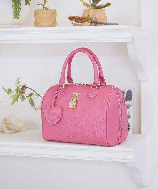 付属のハート型のキーチャームは、ほどよい甘さを演出してくれて、女性らしい上品な雰囲気に。